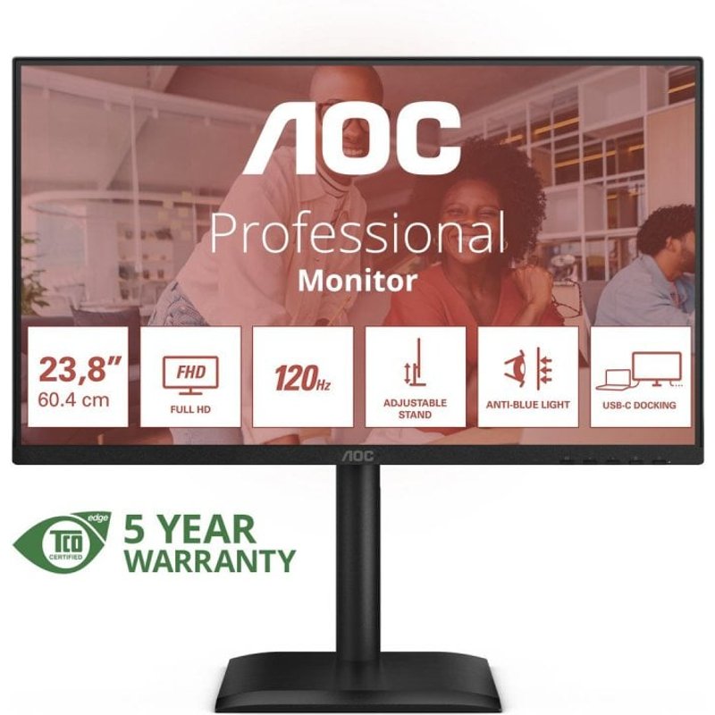 – El Monitor AOC 24E4CV está diseñado específicamente para entornos profesionales exigentes, ofreciendo un rendimiento profesional ultra fluido que aumentará tu productividad y comodidad visual.