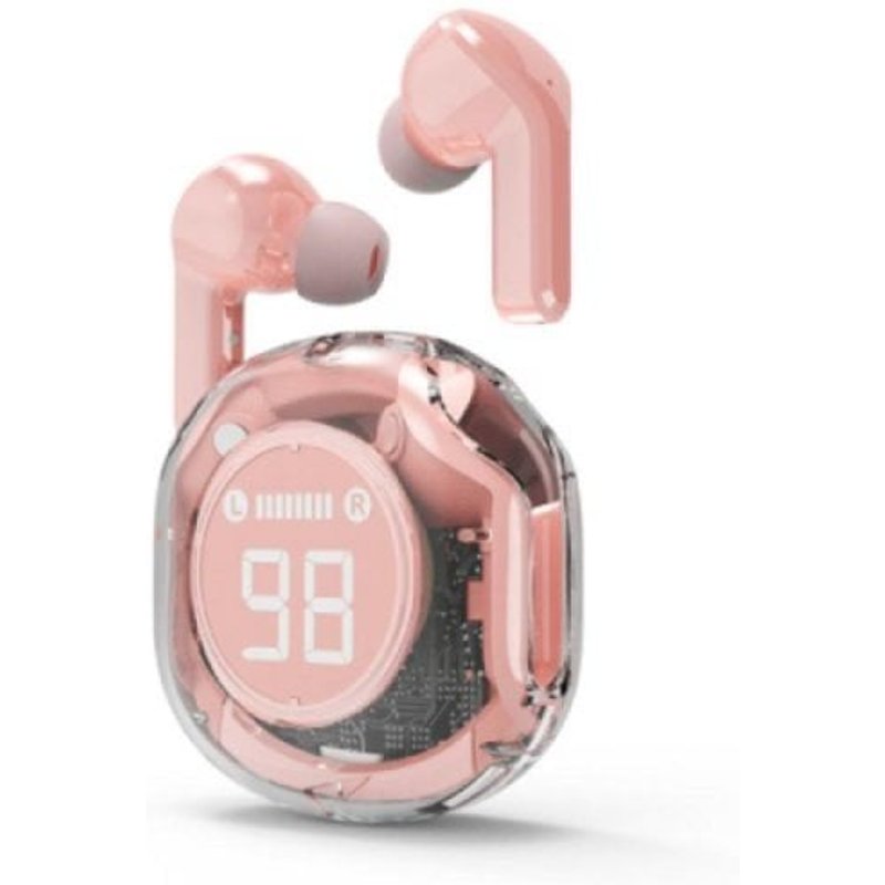 – El acabado transparente rosa le da un toque exclusivo y atractivo a estos auriculares, resaltando su aspecto moderno y elegante.