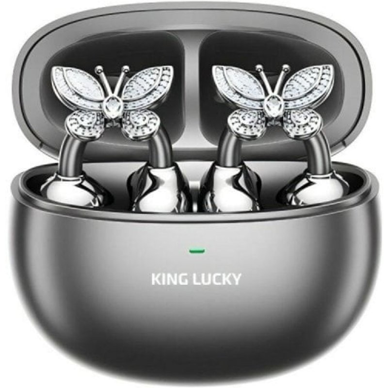Auriculares Kinglucky inalámbricos Bluetooth 5.4 con Cancelación de Ruido y micrófono, resistencia IPX5 negros y plateados 4899888815112