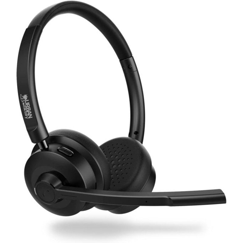 Auriculares Urban Factory MOVEE inalámbricos Bluetooth para llamadas, música y uso diario con micrófono, control integrado y cancelación de ruido en micrófono, color negro HBV50UF-V2