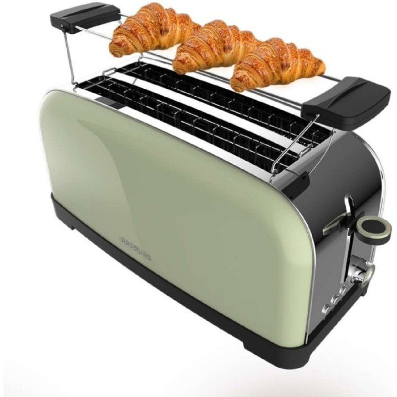 Cecotec Toastin’ time 1500 Green Tostadora con 2 Rebanadas Largas y Soporte de Panecillos en Verde 04824