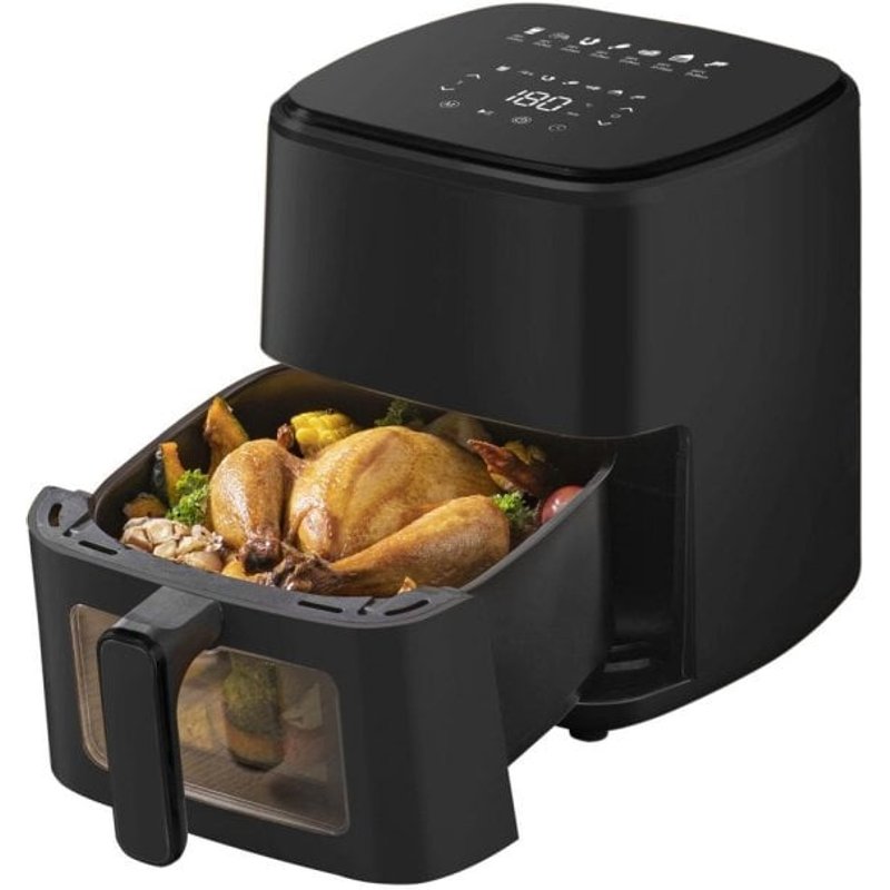 – Gracias a su control digital avanzado con pantalla LED y controles táctiles, la freidora ofrece una experiencia intuitiva y sencilla para personalizar tiempos y temperaturas según las necesidades de cada receta.