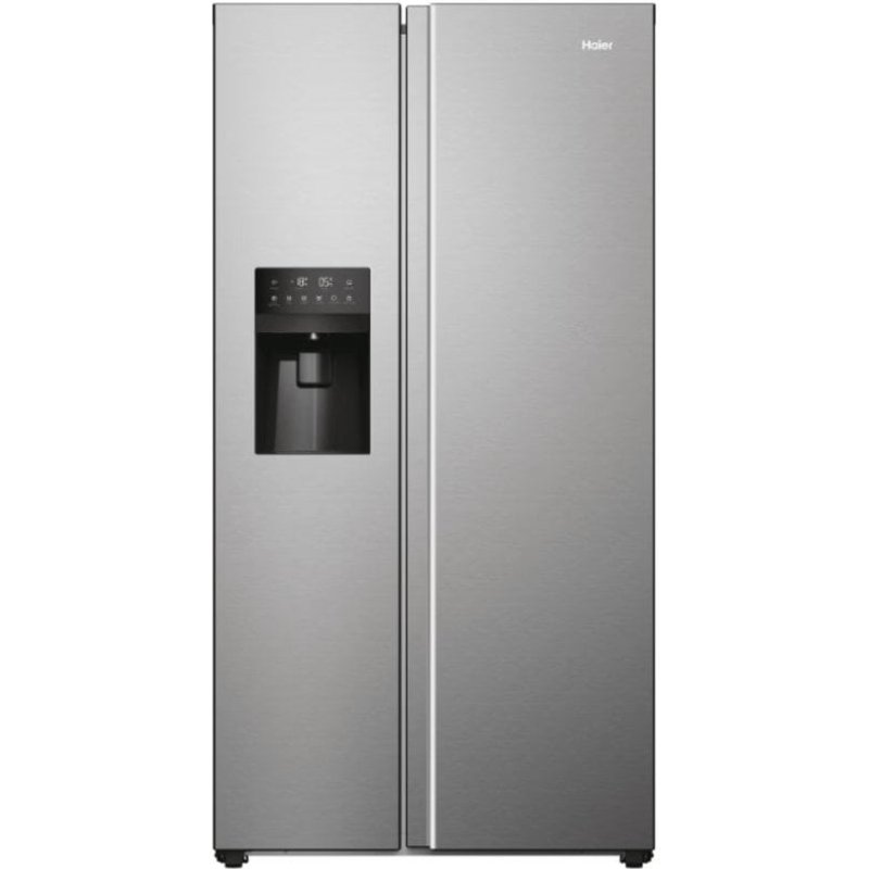 – El Frigorífico Haier SBS 90 Serie 5 HSR5918DIMP es un modelo de nevera americana con dispensador de hielo y agua, fabricado en acero inoxidable de alta calidad.