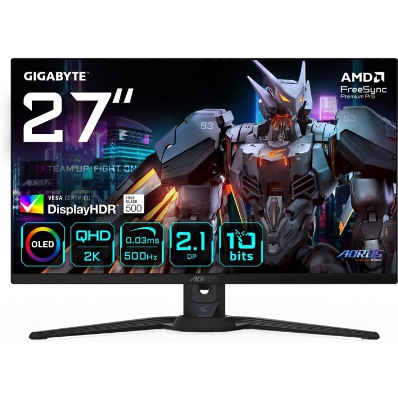 Monitor GIGABYTE AORUS FO27Q5P 27″ QHD 500Hz OLED KVM G-SYNC FreeSync Premium Pro DisplayHDR True Black 500 20VM0-FO27Q5PBA-1EKR