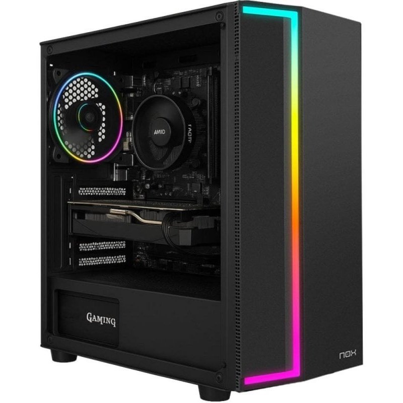 El diseño del chasis Nox Hummer Gamma Cristal Templado no solo es estéticamente atractivo, sino que también está pensado para brindar una óptima refrigeración gracias a su sistema de ventilación ARGB y máximo flujo de aire. Además, cuenta con una amplia variedad de puertos USB tanto en la parte frontal como trasera, así como puertos HDMI para una conectividad versátil.