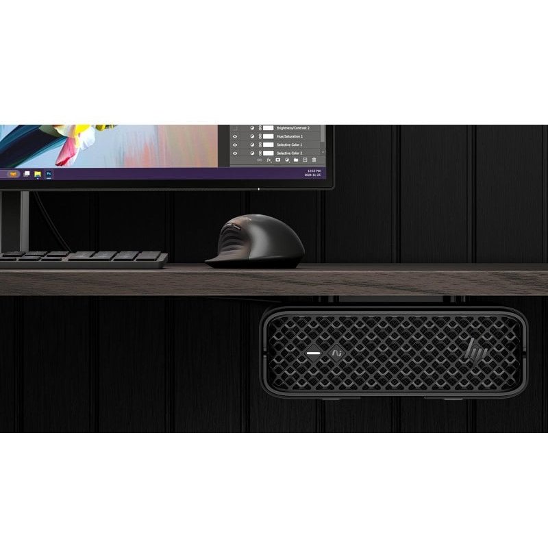 – Tamaño reducido y flexibilidad de instalación: La HP Z2 Mini G1i puede ser colocada en cualquier escritorio vertical u horizontal, o incluso montada detrás de un monitor. Esto la hace ideal para entornos de trabajo donde se requiere espacio optimizado sin sacrificar capacidades técnicas avanzadas.