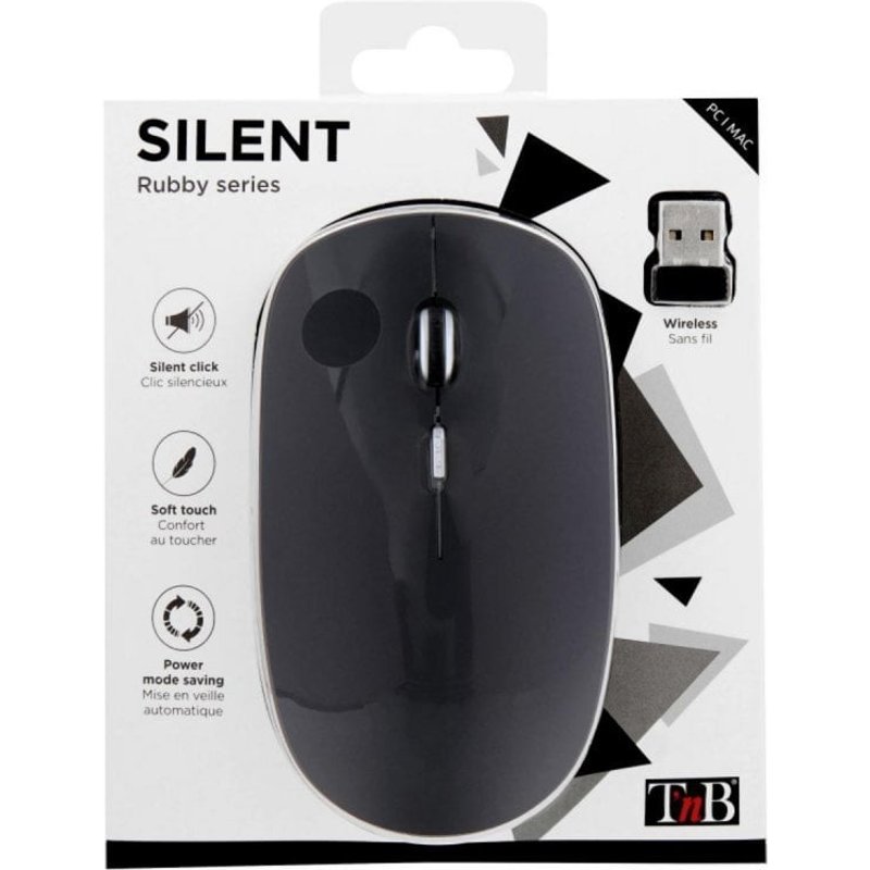 Ratón inalámbrico T’nB MWRUBBY2 1600 DPI Ambidextro Negro Plata Clic Silencioso MWRUBBY2