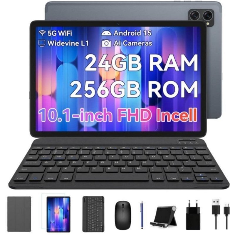 Tablet KINGRID T20 10.1″ 256GB WiFi 5000 mAh Android 15 con teclado Gris T20(8+256)K-GREY